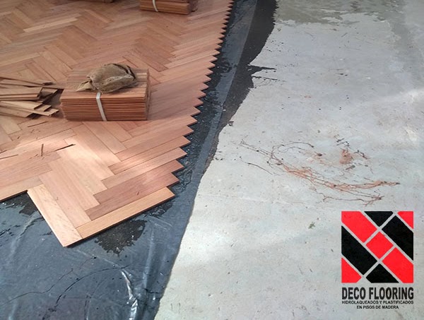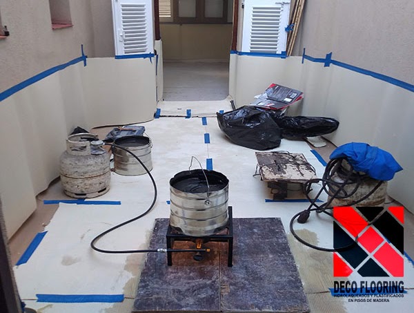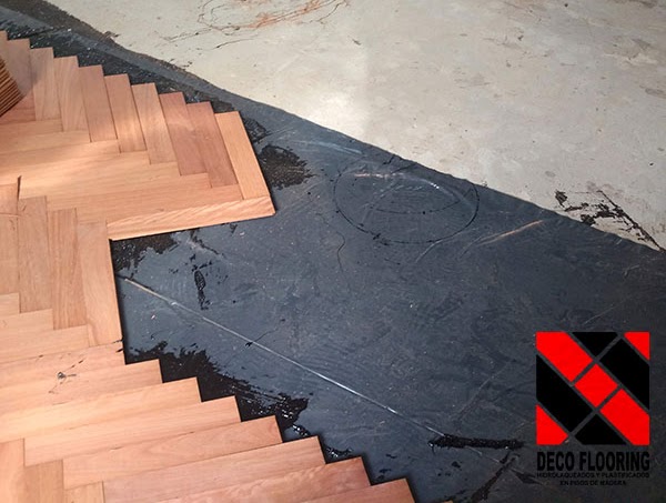 CONSISTE EN APLICARLE A LA CARPETA, UNA CAPA DE BREA TRATADA CALENTADA A 180° DE TEMPERATURA, LUEGO UN NYLON DE 200 MICRONES Y UNA SEGUNDA CAPA DE BREA, POR ULTIMO SE PROCEDE A COLOCAR DIRECTAMENTE EL PISO ELEGIDO SOBRE LA CARPETA TRATADA.